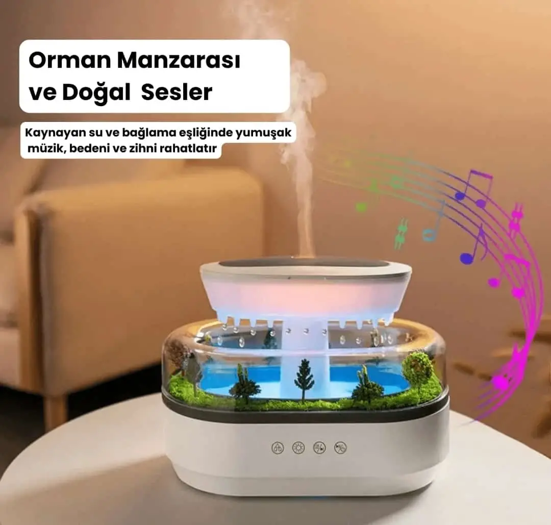 Gerçekçi Doğa Hissi: Yağmur sesi ve orman teması ile doğanın sakinliğini evinize taşır.